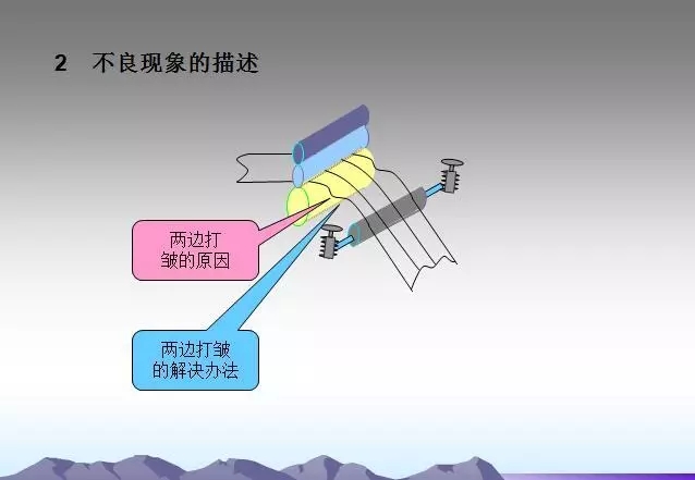 背輥及各過輥粘有異物或使用過多的水。需要經(jīng)常檢查,及時(shí)發(fā)現(xiàn)并清理,并注意不要損傷輥面。