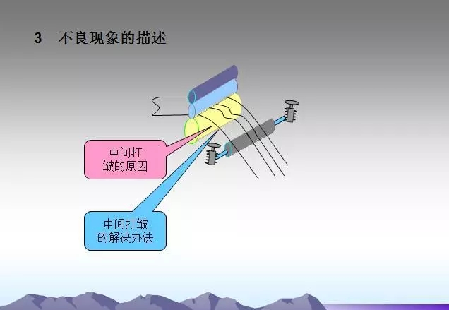 過輥之間平行度超差會(huì)造成箔帶打皺,須仔細(xì)檢查究竟是垂直投影面不平行還是水平面不平行,然后加以調(diào)整